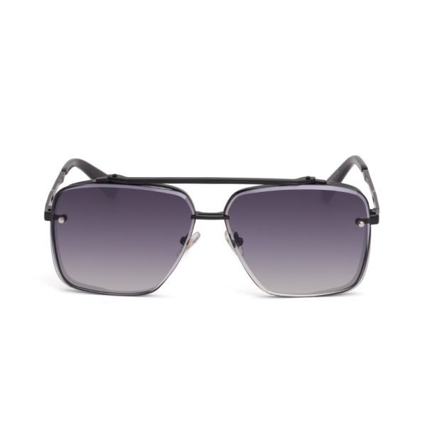 These edgy square sunglasses boast a frameless design with a touch of luxury. The black, trimmed metal frame adds a sophisticated touch, while the gray lenses offer UV protection for your eyes. These sunglasses are perfect for the trendsetting man who wants to make a statement.